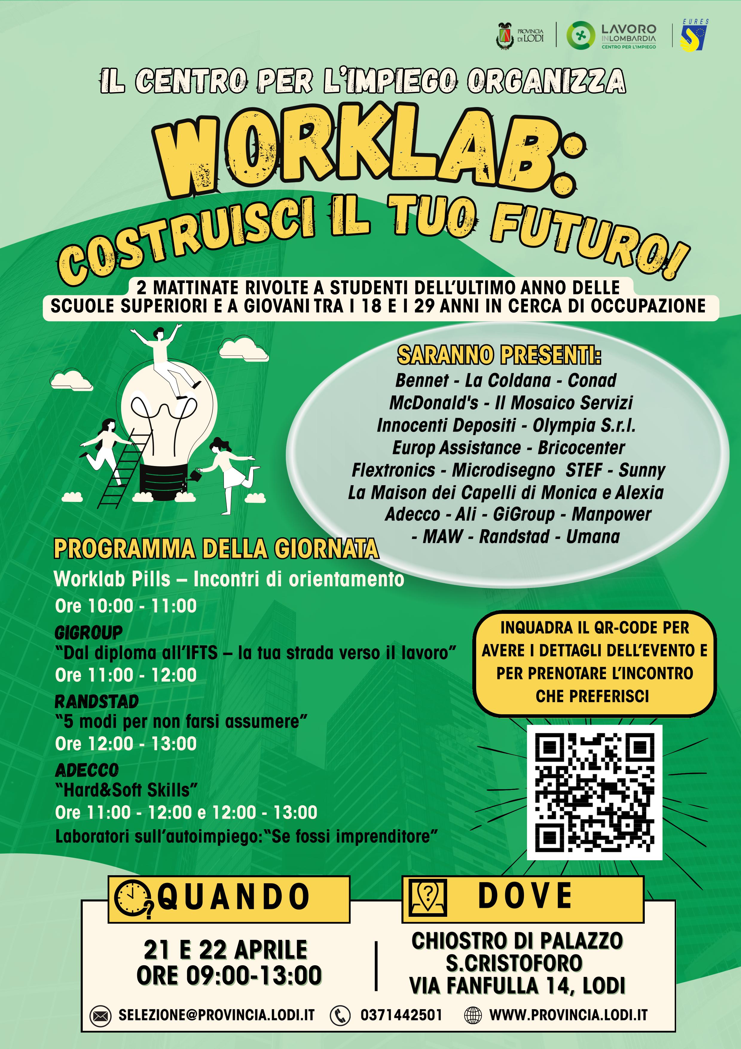 WORKLAB: COSTRUISCI IL TUO FUTURO RIVOLTO A STUDENTI DELL'ULTIMO ANNO DELLE SCUOLE SUPERIORI E A GIOVANI IN CERCA DI OCCUPAZIONE
